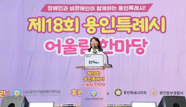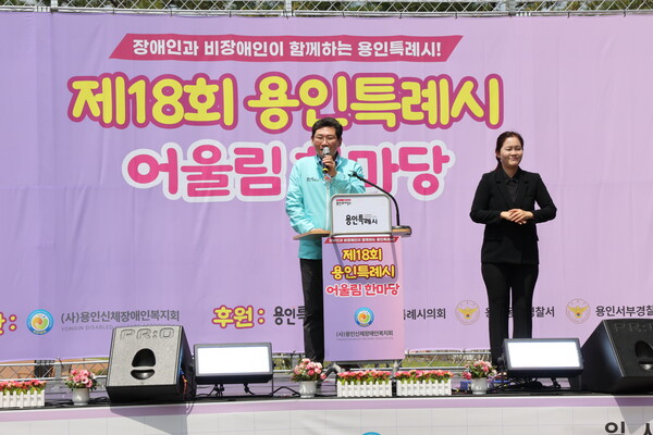 이상일 용인특례시장은 축사에서 “우리는 함께할 때 가장 강합니다” “용인특례시는 모두가 평등하고 함께 잘 사는 도시를 만들기 위해 노력하고 있습니다. 오늘 이 자리를 통해 장애인과 비장애인이 서로를 이해하고 격려하는 사회적 연대가 더욱 깊어지길 바랍니다. 여러분의 따뜻한 미소와 박수가 우리 사회를 더 아름답게 만들어줄 것입니다.”라고 말했다.